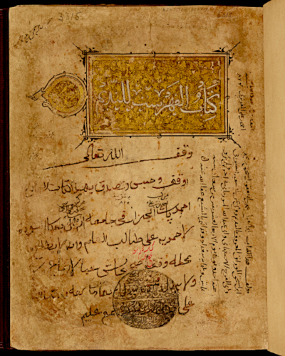 - Illustration and title page of the 990 CE copy of Al-Fihrist. Chester Beatty, Dublin, CC BY 4.0. https://viewer.cbl.ie/viewer/image/Ar_3315/13/LOG_0003/
